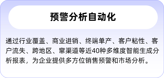 支持终端“进销存”和商业流通等“连续节点数据监控”,提供多维度分析与多维度预警。